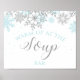 Invierno de Onederland primera fiesta de cumpleaños Warm up en el Soup bar firma copos de nieve azules y plateados.
