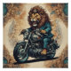 Un león caprichoso llamado Bart montando una motocicleta con una chaqueta de cuero.