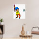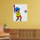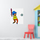 Whimsical childlike cartoon drawing of a little boy playing baseball.