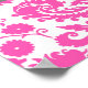 Nombre del personalizable Bat Mitzvah fiesta banner poster en divertido y audaz fuchsia brillante color rosa caliente, gris y blanco clásico de damasco floral.
