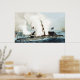 Impresión de la Guerra Civil que muestra la Batalla Naval del Monitor y El Merrimack, también conocida como la Batalla de las Carreteras Hampton. Celebre la Guerra Civil y la Historia Estadounidense con este producto de afiches vintage restaurado digitalmente de The War Is Hell Store. ¿Quieres más productos militares y de historia? Desproteger