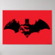 Batman standing in Gotham City, the silhouettes forming the peaks of the Bat Logo shape.