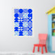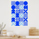Minimalist Bauhaus-style poster featuring geometric blue circular patterns, advertising the 1923 exhibition held from July to September.