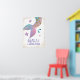 Whimsical poster with quote featuring a pink, teal, purple ombre mermaid tail with faux gold glitter details with stars and splash of water around. The typography text at the bottom says "Be A Mermaid & Make Waves." Inspirational quote design for a girl's room.