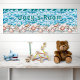 Beach shells and ocean waves custom poster for a child's bedroom. Personalize this 36 x 12 inch wall art with a child's name, or name with "room". Sea green text is printed over blue waves, and interesting seashells line the shore. You may change the size, but be sure all text remains away from the edges. Unisex design is perfect for boys or girls. Makes a unique and special gift for a new baby too!