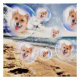 El colorido y divertido poster de Beach Corgis diseñado por www.zazzle.com/CorgiGifts, perfecto para los amantes de Corgi de todas las edades.