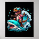 Póster Beach Lover T-rex Dinosaur Riding Shark Surfing Oc
