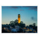 Coit Tower rises warmly above a hillside neighborhood as evening settles over the city. The image balances urban intimacy with iconic presence, making it ideal for editorial, travel, or architectural use. A timeless view of city character and place.