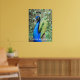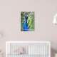 Our photograph of a brightly colored peacock in full color looks amazing on canvas, poster prints, or even greeting cards.