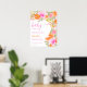 Bienvenidos a una hermosa ducha de bebé pintada a mano con este elegante cartel de bienvenida "Baby in Bloom". Con sus vibrantes acuarelas en tonos rosas, naranjas y verdes, este diseño le da un toque fresco y alegre a su decoración de eventos. Perfecto para las duchas de primavera o verano, este cartel floral crea una entrada cálida y acogedora para celebrar a la futura madre. Personaliza con el nombre y la fecha para un toque único y especial.