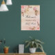 Un poster de bienvenida para una ducha infantil elegante y moderna. Un fondo rústico de gradiente rosa y dorado rosa, pampas estilo boho, oro rosa y flores rosas rubias y un chica de oso de peluche sosteniendo un globo rosa. Personalice y agregue un nombre.