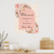Un poster de bienvenida para una ducha infantil elegante y moderna. Mármol dorado y arco dorado subió decorado con pasto pampas estilo boho, oro rosa y flores rosadas rubíes. Personalice y agregue dos nombres.