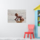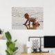 Una bonita imagen de un bebé arrastrándose por la arena de la playa, disfrutando de las olas de agua que salpican.