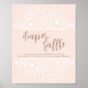 El cartel de la ducha es rosa, blanca y marrón de cobre para mostrar a los clientes dónde poner pañales para la rifa. Este signo suave y femenino es todo lo que necesitas para llevar el tema a lo largo de tu evento.