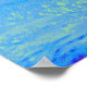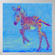 Un bebé cebra de colores arcoiris contra un fondo azul.