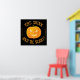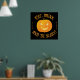 Halloween firma un poster cuadrado con texto Comer, beber y tener miedo y calabaza aterradora naranja sobre fondo negro. Las dimensiones de la huella de signo (poster) son de 24 pulgadas por 24 pulgadas.