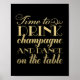 Inicia la fiesta con este glamuroso letrero de "Hora de beber champán y bailar sobre la mesa" que presenta tipografía inspirada en el art déco en dorado brillante sobre un fondo negro dramático. Una pieza llamativa y de alto contraste para tu barra, pista de baile o entrada de recepción que marca el tono para una celebración memorable. Todo el texto es totalmente personalizable.