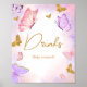 Póster Bebidas Baby Shower de mariposa morada de oro rosa