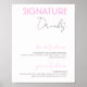 Póster Bebidas con firma rosa y blanca Poster de bar Boda