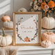 Celebre la llegada de su calabaza pequeña con este lindo cartel de ducha con tema de otoño con un encantador diseño de flores silvestres con una calabaza linda, pequeñas flores silvestres, ramas y hojas y un patrón a juego en el reverso. Este letrero captura perfectamente la calidez y la comodidad de la temporada de otoño. Los colores cálidos y la letra juguetona seguramente marcarán el tono para una celebración memorable y festiva.