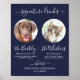 ¡Bebidas con estilo! Caligrafía simple y elegante, este letrero de barra de bebidas con estilo presenta dos cócteles 'la Novia' y 'el Novio', personalizados con sus bebidas favoritas. Personalice este elegante letrero de boda con la foto de su mascota favorita, foto de perro, foto de compromiso o fotos de parejas, nombres y bebidas con estilo. También puede personalizar las fotos de las bebidas con estilo con sus mascotas favoritas para una boda de mascotas. Personalice con fotos de perros o gatos. DERECHOS DE AUTOR © 2020 Judy Burrows, Black Dog Art - Todos los derechos reservados. Póster de bebidas con estilo para boda de perro con foto en azul marino.
