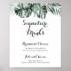 Este cartel de bebidas típicas florales blancas con vegetación tropical es perfecto para una boda rústica. El diseño presenta ramos de hojas de palma verdes con hermosas flores blancas.