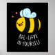 Bee-lieve en Yourself Funny Bee Pun presenta una abeja adorable con una sonrisa adorable y feliz que anima a ser usted mismo. Gracioso regalo de juego de palabras para la familia y amigos que aman ser ellos mismos.