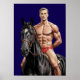 Un tipo de bizcocho montando en un caballo negro. Puede cambiar el color de fondo de la imagen (ahora azul oscuro).