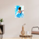 Poster en un retrato acuarela de una bella bailarina joven / bailarina en azul