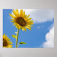 Póster bellas flores solares con cielo azul turbio