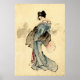 Mujer, retrato de largo, de pie, mirando hacia la izquierda, sosteniendo el ventilador a la derecha, usando kimono con diseño de cheque. De un original dibujo de tinta japonesa de 1840 realizado por Katsushika Hokusai. Todos los derechos reservados © 2012 padre art