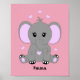Póster Bello elefante bebé rosa para niñas