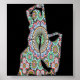 Un corte de un elegante bailarín de barriga con un motivo de baldosas florales. Fondo negro. Personalizar con texto.