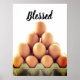 Este poster presenta huevos apilados como una pirámide en un estuche de huevo sobre fondo blanco. El texto negro dice "Bendito". Personalizar este artículo o compra como diseñado. Imagen de stock www.freepik.com