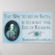 Una gran cita de Benjamin Franklin, "La manera de ver por fe, es cerrar el ojo de la razón"
