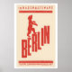 Berlin Bear Matchbox Label Print – Vintage German Duotone Poster, Mid-Century Wall Art, Red Typography Design 1