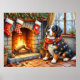 Póster Bernese Mountain Fireplace with Christmas Lights