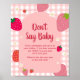 Haga especial su evento con este Baby Shower de fresa con nuestro encantador y bonito Rótulo grabable Don't Say Baby con el adorable tema de Gingham Baby Shower. Descarga, personaliza y crea recuerdos duraderos con este toque perfecto para tu alegría. BS1019