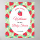 Póster Berry Sweet Green Strawberry Baby Shower Welcome