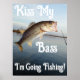 A los aficionados a la pesca, a los amantes de la naturaleza y a los extranjeros les encantará este humorístico eslogan Kiss My Bass que rodea la imagen de un bajo. En la parte de atrás hay un bajo que parece saltar cerca de un poste de pesca sobre el fondo de un paisaje de puesta de sol.