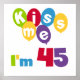 ¿Cumpliendo 45 años? Te encantará nuestro equipo de 45 años Kiss Me a camisetas, tazas, tarjetas, pegatinas, imanes, cadenas de claves y otros equipos de 45 años con un globo multicolor brillante y diseño de texto.