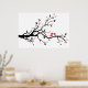 Póster Besando pájaro en rama de árbol con hojas de coraz