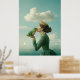 Un retrato inspirado en cuentos de hadas de una mujer de regal vestida de verde vintage, besando a una sapo vibrante contra un telón de fondo oceánico de ensueño. Genial, romántico y atemporal.