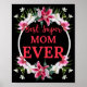 Póster Best Super Mom Ever Red Text with Red Flowers Grap