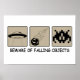 Beware of Falling Objects Poster. Space may be the final frontier, but sometimes Earth is the final destination of outer space inhabitants. This funny design features 3 separate threats from above. Keep your eyes on the sky people, and beware of falling objects.