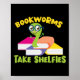Este divertido amante de los libros y el diseño de los profesores de lectura dice "las lombrices de libros se quedan en los estantes". El diseño incluye una lombriz de libros.