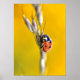 Macro de siete manchas ladybug (Coccinella septunctata) sobre tallo sobre fondo amarillo