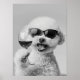 Póster Bichon Frise Holding Wine Wall Art, Black and Whit