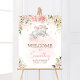 Póster Bienvenida a Baby Shower de Elefante Floral Rosa