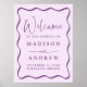 Póster Bienvenida a Boda de marco ondulado morado moderno